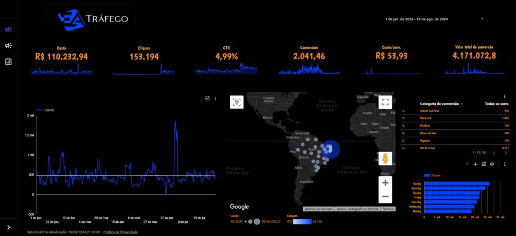 Na EA Tráfego, implemento e gerencio cada etapa dos serviços, que incluem gestão de tráfego pago, automação de e-mail marketing, criação de landing pages, dashboards e muito mais. Meu compromisso é garantir que suas metas sejam atingidas com estratégias comprovadas e um suporte próximo, ágil e eficiente.